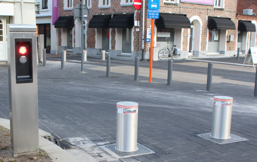 Bree is al lang geen onbekend terrein meer. Al in 2015 plaatsten we slimme verkeerslichten aan de bruggen van Tongerlo en Beek, in opdracht van De Vlaamse Waterweg nv. Later zorgden we ervoor dat uitgaansbuurt het Stift in het weekend verkeersvrij gemaakt kon worden door middel van verzinkbare palen. Dat deden we op vraag van Kumpen nog eens over aan de Kleine Ring en de Grauwe Torenwal. Of we in 2020 ook het stadscentrum konden uitrusten met verdwijnpalen? Met plezier.