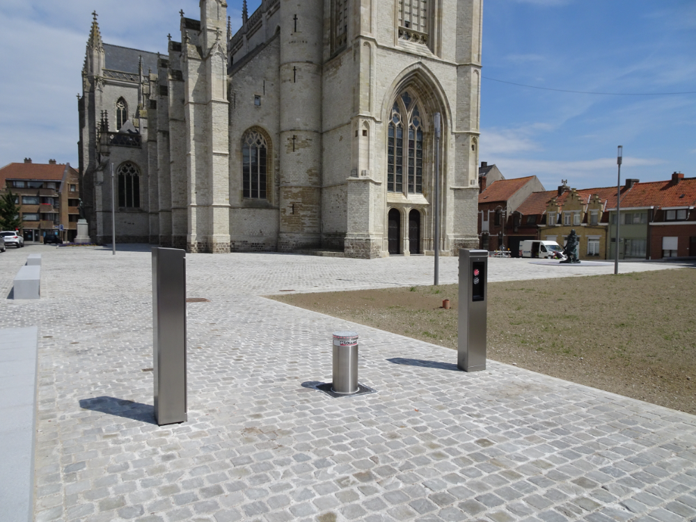 Lowist Toegangsbeheer installeerde verzinkbare palen aan de ingang van het kerkplein, zodat enkel gemachtigde voertuigen toegang kregen. In 2022 volgde een tweede opdracht: het vernieuwde stadsplein, dat voortaan dienstdoet als markt- en evenementenplein, eveneens verkeersvrij maken. Ook hier zorgde Lowist voor verzinkbare palen met een gebruiksvriendelijk toegangscontrolesysteem, perfect afgestemd op de noden van de stad.Het resultaat? Een veilige, flexibele en esthetische oplossing die het historische karakter van de pleinen respecteert en tegelijk het verkeer efficiënt beheerst.