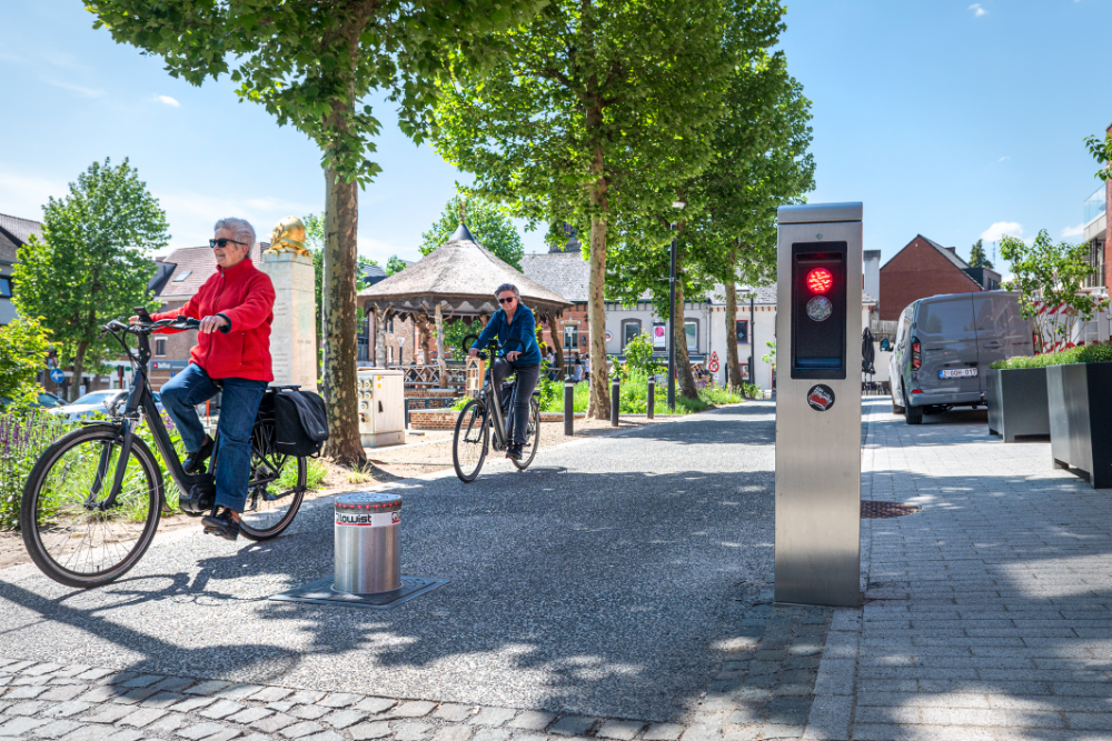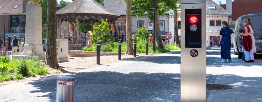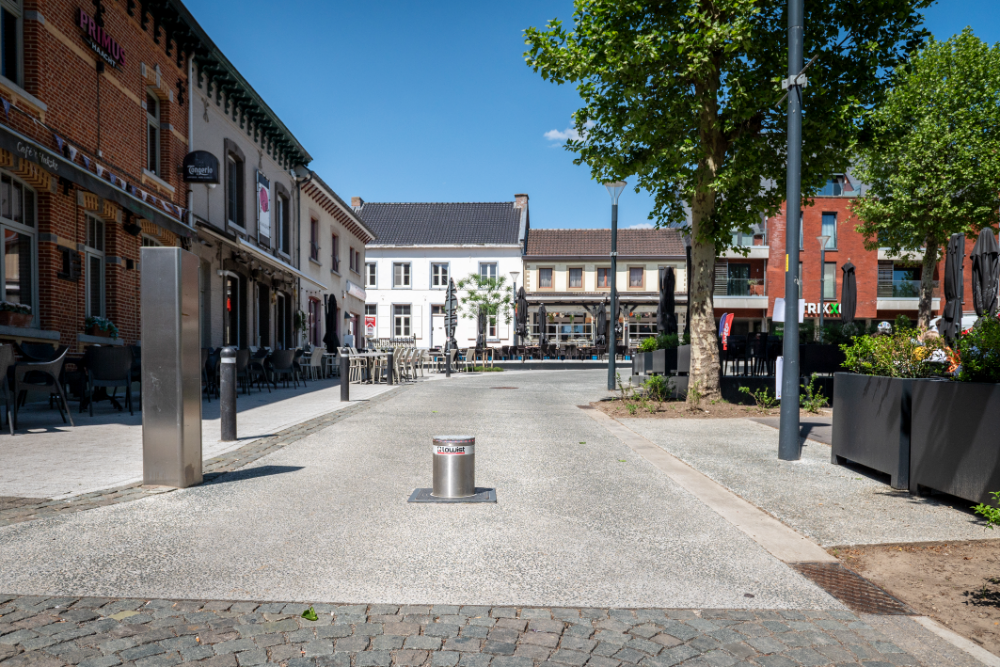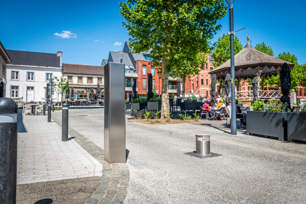 Lowist Toegangsbeheer dacht mee en kwam tot dit voorstel: door de plaatsing van een verdwijnpaal aan weerszijden van de weg rond het Gemeenteplein, kunnen de gemeentelijke diensten het gedeelte vóór de horeca afsluiten voor doorgaand verkeer om – op zelf te bepalen momenten – de terraszone functioneel te vergroten. Flexibiliteit troef!