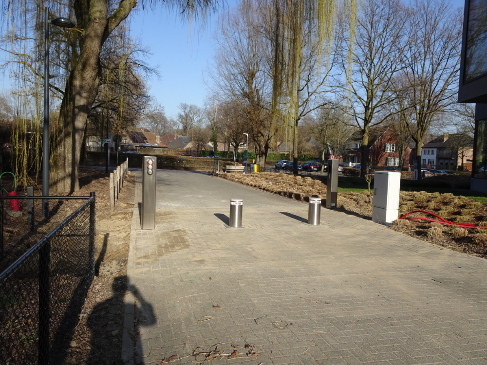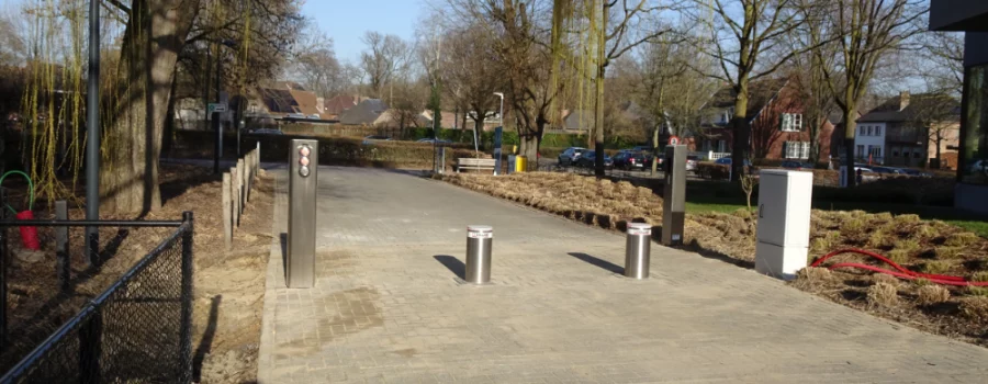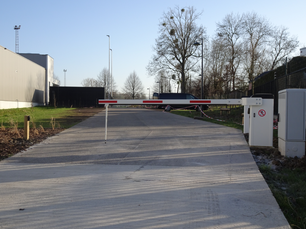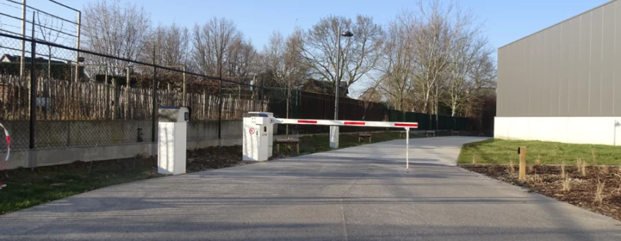 Om de drukte te stroomlijnen en de vlotte toegang voor beheerders en leveranciers te garanderen, rustten we de site uit met een dubbele installatie: 2 met slagbomen en 2 met verzinkbare palen. De verdwijnpaal aan de toegang tot het zwembad dateert al van 2009 en is nog altijd operationeel. De aanvullende systemen werden geplaatst in 2021 (bij de aanleg van de tennis- en padelpleinen).